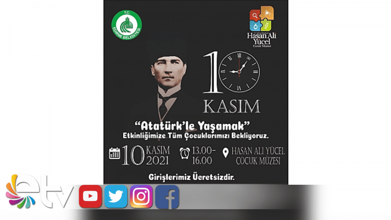 Edirne Belediyesi Hasan Ali Yücel Çocuk Müzesi’nde 10 Kasım Atatürk’ü Anma Günü’nde ‘Atatürk’le Yaşamak’ isimli etkinlik düzenlenecek. Müzede çocuklar, Atatürk Puzzle Tablo Yapımı etkinliği gerçekleştirecek.