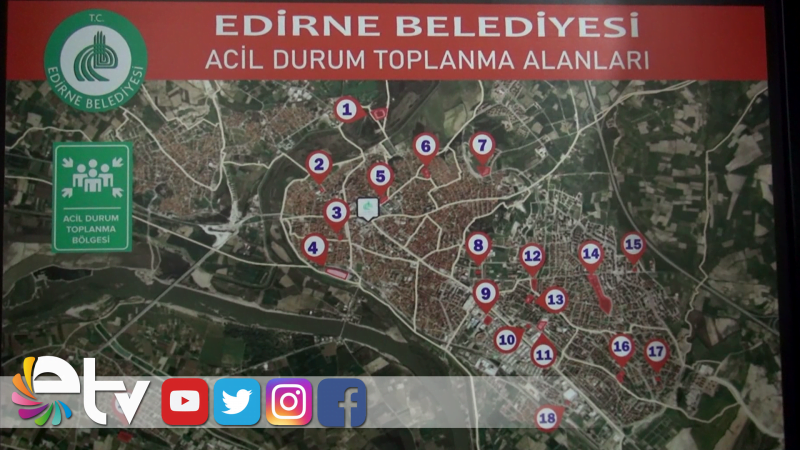 Edirne Belediyesi, Edirne İl Afet ve Acil Durum Müdürlüğü ile ortaklaşa bir çalışma gerçekleştirerek Afet ve Acil Durum Toplanma Alanlarını belirledi ve bu alanları halkın görebilmesi için harita hazırladı. Toplanma alanlarının bulunduğu mahalle bazındaki haritalar 24 mahalle muhtarlığına teslim edildi.