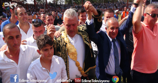 Kırkpınar Ağası Seyfettin Selim, daha sonra Er Meydanı'nda omuzlarda taşındı.