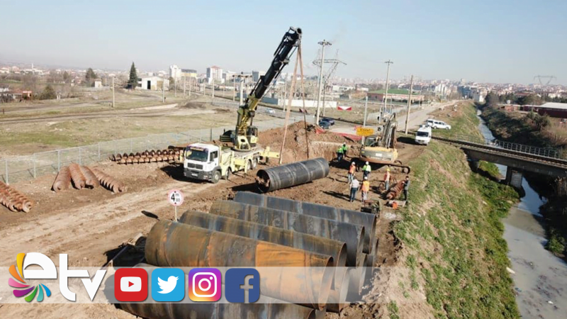 Bosnaköy-Olin Kavşağı’nda gerçekleştirilen çalışmaları yerinde inceleyen Belediye Başkanı Recep Gürkan, altyapı çalışmalarında önemli bir noktaya geldiklerini ve Tren Yolu Hemzemin Geçidi’nin yatay delgi sondaj yöntemiyle geçeceklerini söyledi. Aynı bir tünel yapımı gibi gerçekleştirilen bu çalışmanın oldukça meşakkatli bir iş olduğu belirten Gürkan, “Edirne’nin yıllardır en büyük problemi Abdi İpekçi Caddesi, Kocasinan Mahallesi’nde, Dr. Sadık Ahmet Caddesi’nde, Hoca Ahmet Yasevi’de, İlhami Ertem Caddesi’nde kanalizasyon borularıyla geçmişte birbirine bağlanmış olması nedeniyle en küçük bir yağışta her tarafın su altında kalmasıydı. 2019 Aralık ayında altyapı çalışmalarına büyük bir hızla başladık. Edirne’nin yeni yerleşim bölgesinin en büyük sorunu olan Kanalizasyon ve Yağmur Suyu Toplama hatlarını Paşaçayırı Mevkii’ndeki bulunan İleri Biyolojik Atık Su arıtma Tesisine bağlayacağız. Bu bağlamda 2,5 aydır söz konusu mahallerimizde 1200’lük buhar kürlü contalı beton borularla hatlarımızı döşedik. Şimdi arkamızda Tren Yolu Hemzemin Geçidi var. Tren yolunu kaldıramadığımız için yatay delgi sondaj yöntemi ile geçmemiz gerekiyordu. Yarın altından 6 metrelik kottan 1600’lük çelik borularla, yatay delgi sondajla burasını geçiyoruz. Bu borular aynı tünel yapımı gibi. Yerin 6 metre altında yer alacak. Karşıya geçecek ve sonra bu 1600’lük çelik boru kılıflarının içerisine beton buhar kürü boru imalatları yapılacak ve kalıcı bir şekilde şehrin bütün ana hatlarını yağmur suyu, kanalizasyonu, buradan bu sistemle taşıyarak, Paşaçayırı’ndaki İleri Biyolojik Atık Su Arıtma Tesisi ile buluşturmuş olacağız” dedi.