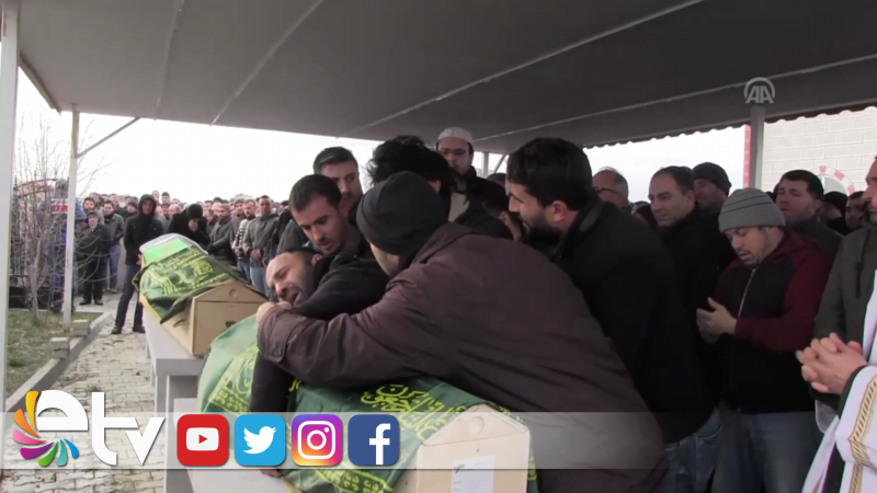 Eşi ve çocuklarını kaybeden Ali Aldemir'in tabutlara sarılarak ağlaması cenazeye katılanların yüreklerini dağladı.
