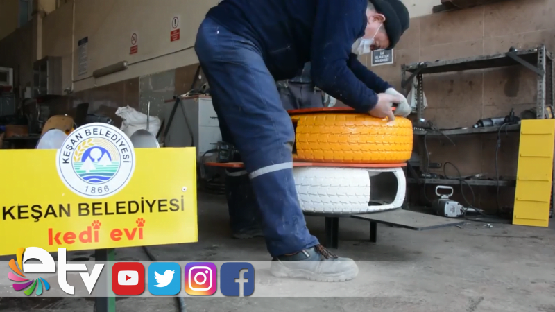 Keşan Belediyesi, atık lastiklerden kedi evi üreterek, ilçe genelindeki parklara, taksi durakları ile meydanlara yuva ve besleme üniteleri koydu.
