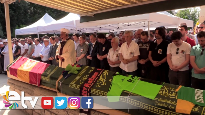 Küçük Oğuz Arda'nın tabutunun üzerine bir gün futbolcusu olma hayalini kurduğu Barcelona'nın forması ve oyuncağı konuldu. Baba Hakan Sel'in tabutu ise Galatasaray bayrağıyla örtüldü.