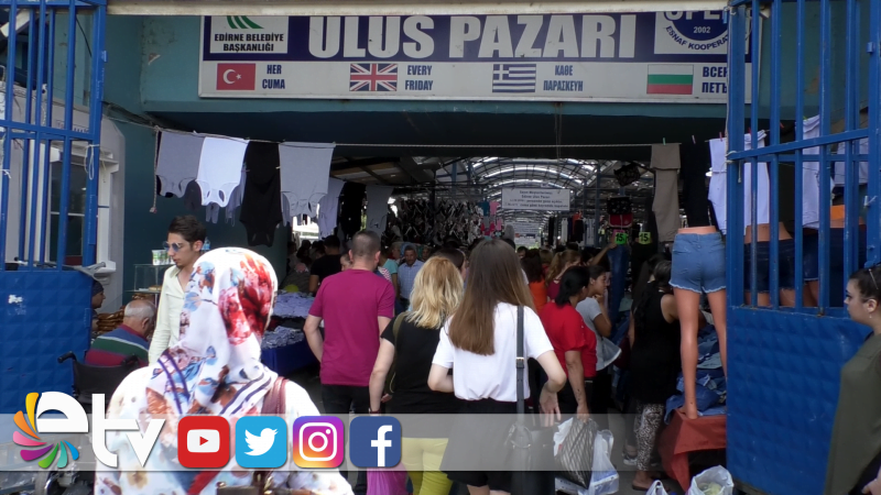 Edirne’de Ramazan Bayramı arifesinde vatandaşlar yaz sıcaklarına aldırış etmeden Sosyete pazarı olarak da bilinen Balkanların en büyük pazarı konumundaki Ulus Pazarına akın etti.