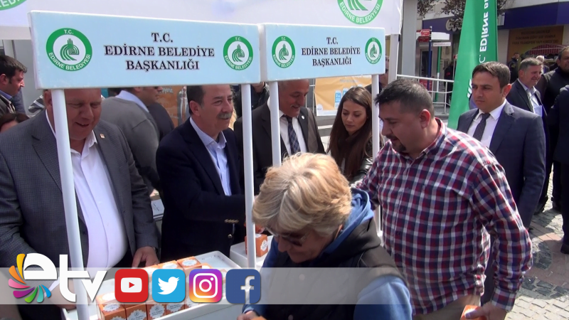 Edirne Belediye Başkanlığı Miraç kandili dolayısıyla Saraçlar Caddesinde stant kurarak vatandaşlara kandil simidi ikramında bulundu.