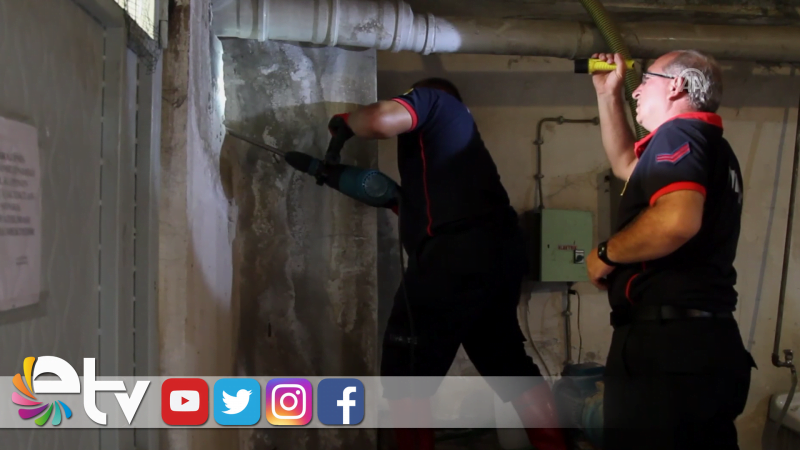 Hilti ile beton duvarı kırarak boruya ulaşan ekipler, yaklaşık iki saat süren çalışma sonucunda kediyi kurtardı.