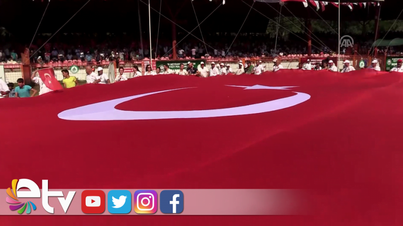 Güreşlerde görev yapan hakemler ve sporseverlerin taşıdığı 30 metrekarelik Türk bayrağı, 55 yıllık Kırkpınar başcazgırı Şükrü Kayabaş'ın sunumu ve marşlar eşliğinde meydanda dolaştırıldı. Bayrağın arkasında da “Kalbimizle, duamızla Mehmetçiğin yanındayız” yazılı pankart taşındı.