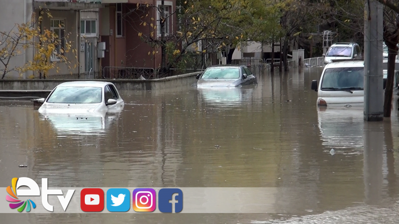 Kocasinan Mahallesi’nde çok sayıda evin bodrum katını su baserken, yüzlerce araç da sel sularına gömüldü.