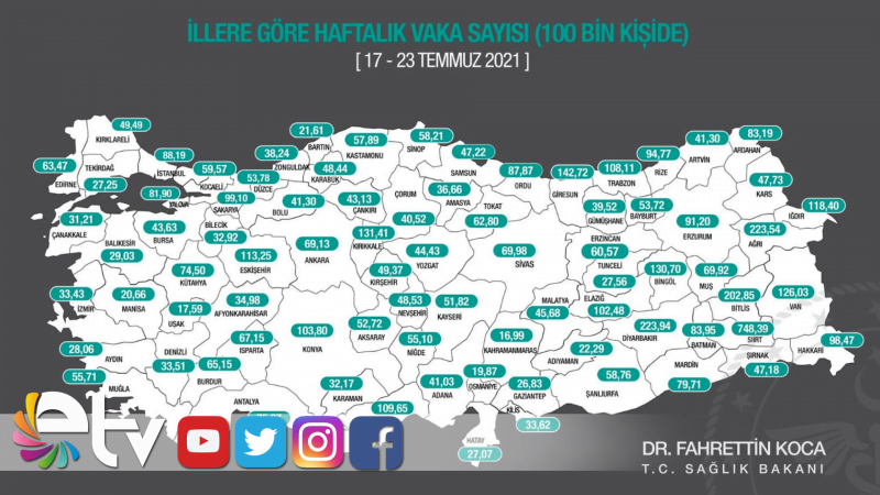 Bakan Koca, son bir haftada vaka sayısı en çok artan illerin Siirt, Diyarbakır, Bitlis, Giresun ve Iğdır olduğunu belirterek, “vaka sayılarındaki artış ve aşılanma oranları arasında ilişki var. Aşı olup tedbirlere uyun” çağrısında bulundu.