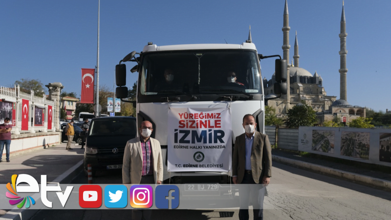 Gürkan, “İzmir’deki hemşehrilerimizin dayanışma duygusu içerisinde Edirne Halkı’nın dayanışma duygusunu ifade etmesi adına 250 bin adet N-95 maske, bin adet 1 litrelik el dezenfektanı, 500 paket çocuk bezi, 200 paket kadın hijyen pedi, 3 bin çift yetişkin ve çocuk çorabı gönderiyoruz. Çünkü insanlar hiçbir şeylerini alamayarak, evlerinden çıkmak zorunda kalmışlar. Diğer taraftan da vatandaşlarımız kullanılmamış battaniye, kuru gıdalar, çadırlarda yaşayabilmeleri için çadır kampetleri varsa vatandaşlarımız Edirne Belediyesi ana binaya bırakabilirler, biz onları toparlayıp, tekrar göndereceğiz. Hepimiz İzmir’in yanındayız, yüreğimiz İzmir’le atıyor, atmaya devam edecek” dedi.