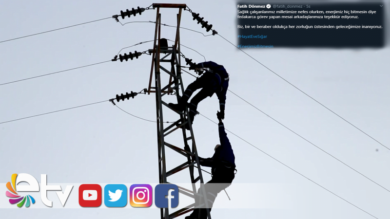 Enerji ve Tabii Kaynaklar Bakanı Fatih Dönmez, resmi Twitter hesabı üzerinden yaptığı paylaşımla 30 Büyükşehir ve Zonguldak ilinde mesleklerinden dolayı çalışmak zorunda olan enerji sektörü çalışanlarına teşekkürlerini iletti.