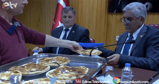 Edirne Genç Çiftçiler Derneği Başkanı Egemen Ilgın ve Yönetim Kurulu Üyeleri, İl Genel meclisini ziyaret etti. Genç çiftçiler meclise gelirken eli boş gelmedi. Meclis üyelerine katmer ve kabak tatlısı ikram etti.