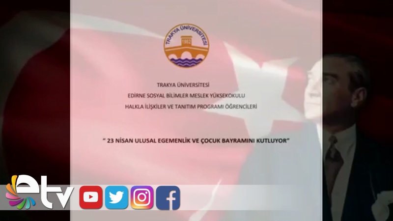 Trakya Üniversitesi Sosyal Bilimler Meslek Yüksekokulu Halkla İlişkiler ve Tanıtım 2.Sınıf öğrencileri 23 Nisan Ulusal Egemenlik ve Çocuk Bayramı kutlamaları kapsamında küçük büyük fark etmeden 23 Nisan çoşkusunu evlerinde, balkonlarında yaşayan halkımızın görüntülerinden bir video derlemesi yaparak 100.yılın çoşkusunu mutluluğunu anlatan görüntüler paylaştı.