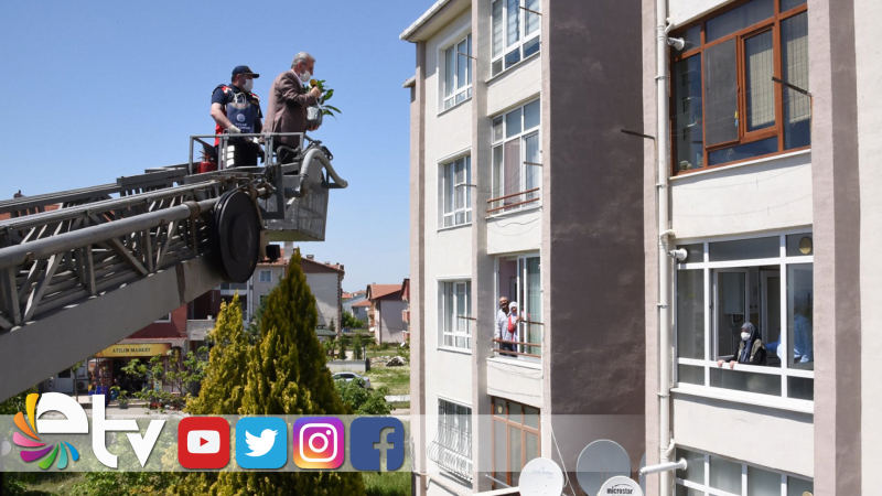 Keşan Belediye Başkanı Mustafa Helvacıoğlu, yaşlıların anneler gününü itfaiye merdiveniyle evlerinin pencerelerinden çiçek vererek kutladı.