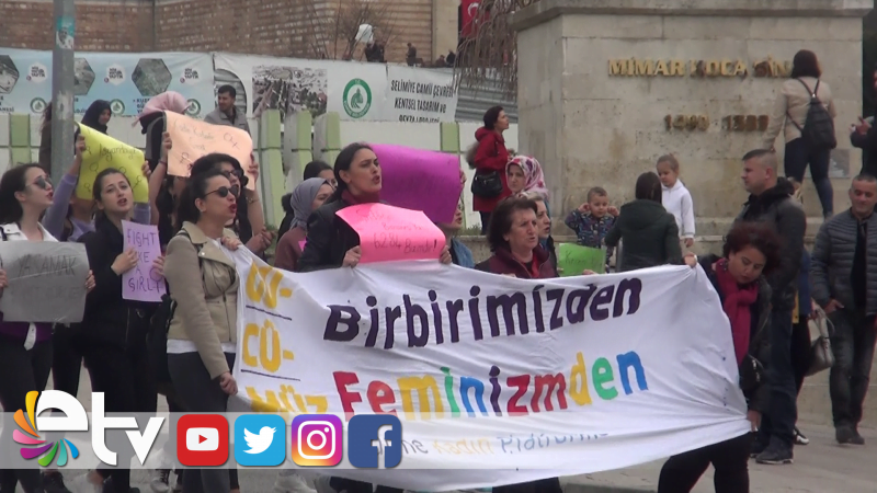 Edirne Kadın Platformu üyeleri krize, savaşa, şiddete ve eşitsizliğe karşı meydandaydı. Ellerinde taşıdıkları dövizlerle Edirne Belediyesi önünden Saraçlar Caddesine slogan atarak gelen Kadın Platformu üyelerine, cadde ve sokaklardaki kadınlar da destek verdi.