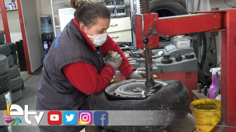 Edirne Sanayi Sitesi’nde oto lastik satışı ve montajı yapan iki çocuk annesi Remziye Cankıran, yıllardır işini severek yaptığını söyledi.