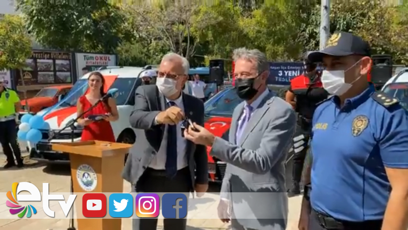Duaların ardından Keşan Belediye Başkanı Mustafa Helvacıoğlu, 3 hibe aracın anahtarlarını Edirne İl Emniyet Müdürü Mustafa Alçalar’a teslim etti.