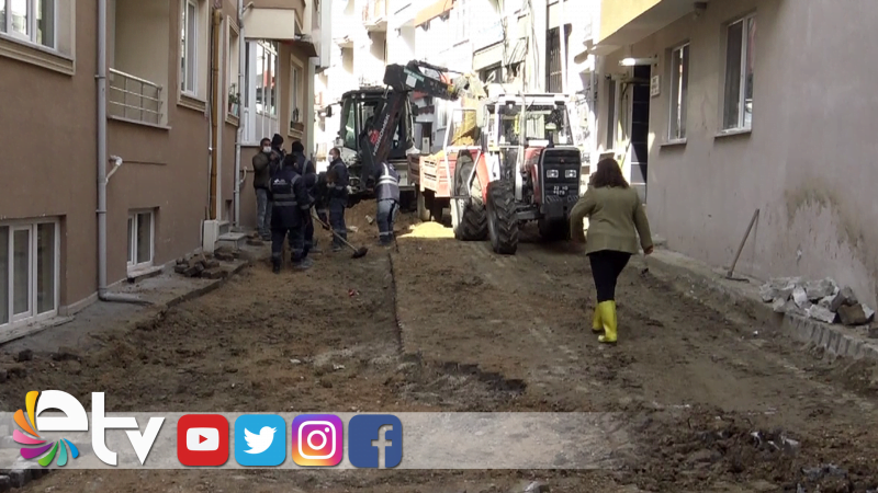 Medresealibey Mahallesi’nde bozulan parke taşlar, belediye işçileri tarafından onarılıyor. Çalışmalar sırasında işçileri bir an olsun yalnız bırakmayan Mahallenin Muhtarı Nesrin Günay da sarı çizmelerini giyerek yapılan çalışmada işçilere yardım etti.