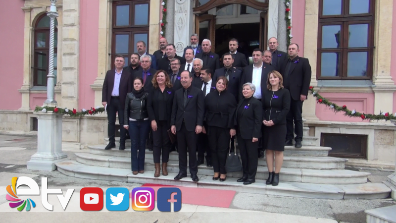 Edirne Belediye Meclisi’nin Kasım ayı toplantısının ikinci bileşimi Belediye Başkanı Recep Gürkan başkanlığında yapıldı. Toplantıya Başkan Gürkan ve tüm belediye meclis üyeleri siyah kıyafet ve yakalarında mor kurdele ile katıldı.