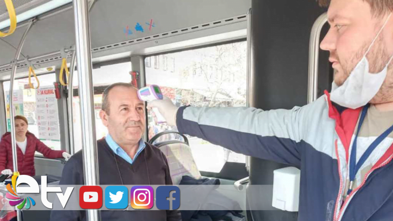 Tekirdağ Büyükşehir Belediyesi, COVİD 19 salgınından korunma ve tedbir amacıyla çalışmalarına devam ediyor. COVİD 19 korunma ve tedbirleri kapsamında, Çorlu ve Süleymanpaşa ilçelerindeki otobüslerde yolculuk eden vatandaşların, gün boyu ve belli aralıklarla ateşleri ölçülüyor ve virüsten korunmak amacıyla uyulması gereken hijyen kuralları ile ilgili uyarılarda bulunuyor.