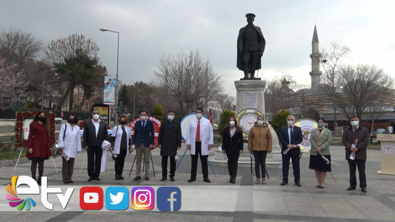 Yıldırım; “14 Mart 1827 İstanbul Şahzade başında Tıphaneyi amire ve Cerahiamire adı altında modern tıp eğitiminin başladığı gündür. İlk kutlama 14 Mart 1919’da İstanbul’un düşman işgaline karşı bir vatan mücadelesi şeklinde başlamıştır. O günden bu güne aslında çok fazla değişen bir şey olmadı. Yine bir mücadele içerisindeyiz. O zaman vatanımıza karşı işgal güçleri ile mücadele ederken, şu anda son bir yıldır sağlık çalışanları camiası koronavirüs pandemisi ile mücadele etmekte. Bu mücadelede de çok üstün başarılar göstermekte. Tüm hekimlerimiz tüm sağlık çalışanlarımız, hasta bakıcılarımız hatta temizlik personelimiz, hastalarımızın şifaya kavuşması için daha iyi bakılmaları, daha kaliteli bir yaşam sürmeleri için elinden gelenleri yapmaktalar. Bunu yaparken aylarca ailesini görmeyen sağlık çalışanlarımız var. Bu mücadelede çok şükür Edirne’de yok ama Türkiye’nin birçok yerinde hastalarını şifaya kavuşturmak için çalışırken vefat eden arkadaşlarımız mevcut. Sağlık çalışanlarımızın verdiği mücadelenin hakkı ödenmez bu yolda çalışan tüm arkadaşlarıma şükranlarımı sunuyorum. Bu süreçte çalışırken vefat eden tüm meslektaşlarımıza Allahtan rahmet yakınlarına da şifalar diliyorum. Bizler sevgi mesleğiyiz, işimizi severek yapıyoruz. Tüm hastalarımızı halkımızı çok seviyoruz, bu mücadeleyi severek canı gönülden veriyoruz. Biz şu sloganla yola çıktık, bizim hasatlarımızın gülüşü, sizin gülüşünüz bizim bayramımızdır dedik. Biz bu mücadeleye ara vermeden devam edeceğiz, inşallah vatandaşlarımızda her zaman olduğu gibi sosyal mesafelerine uyarak, maskelerini takarak bize destek olurlarsa çok fazla sürmeden bu kötü günleri hep birlikte atlatarak sağlık günlere kavuşacağımız düşünüyorum” dedi.