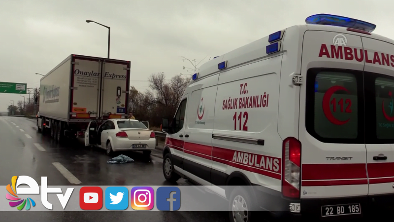 Alınan bilgiye göre, Edirne-Kapıkule Otoyolu İstanbul istikameti Doğu Kavşağı mevkisinde E.K.'nın kullandığı 22 LJ 589 plakalı otomobil, aynı yönde seyreden K.Y. idaresindeki 33 BYE 49 plakalı tıra arkadan çarptı.