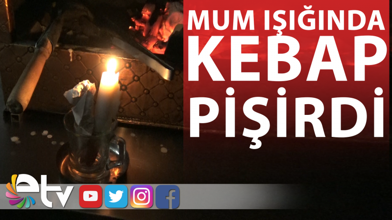 Kebap ve dürüm satışı yapan esnaf Mahmut Aslan, kebap ve dürümlerini mum ışığında pişirmek zorunda kaldı.