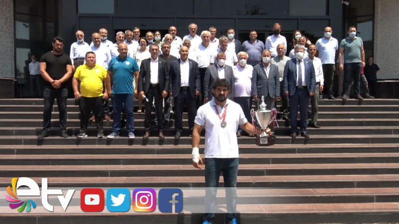 Başpehlivan İsmail Koç, elinde taşıdığı ikincilik kupasıyla birlikte Trakya Birlik Genel Müdürlüğü önünde hatıra pozu verdi.