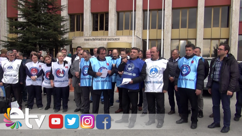 Türkiye Kamu Sen üyeleri, Trakya Üniversitesi Tıp Fakültesi Hastanesi önünde bir araya gelerek, memur ve emeklilere yapılacak zam oranlarıyla ilgili taleplerini açıkladı.