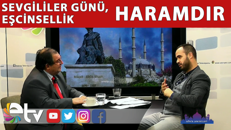 Edirne Televizyonu’nda Cuma günleri yayınlanan, sunuculuğunu Nuri Böcekbakan’ın yaptığı Gönül Sohbetleri Programına konuk olan Edirne İl Müftülüğü Cezaevi Vaizi Selami Soylu, yaklaşan 14 Şubat Sevgililer Günü’nü gündeme getirdi. Soylu, Sevgililer Günü’nü kutlamanın haram olduğunu açıkladı.