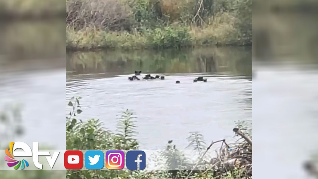 Görüntüleri çeken vatandaşlar da, domuzların nehri geçiş anlarını hayretler içerisinde izledi.