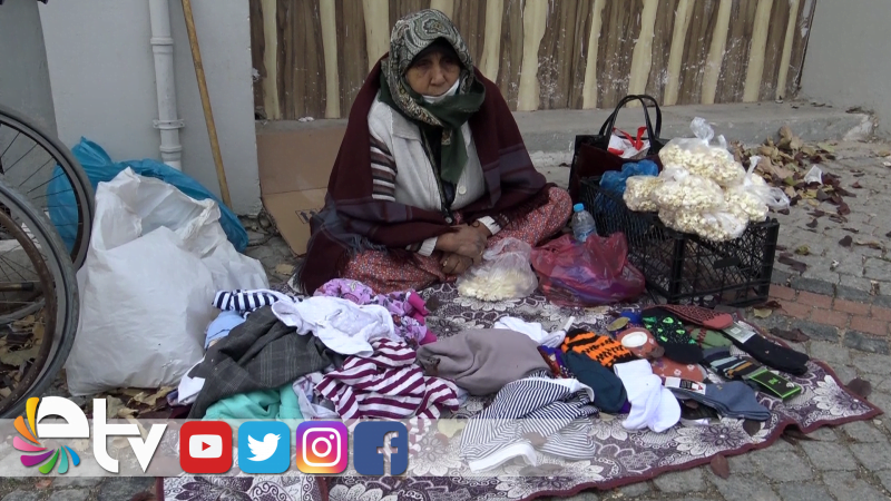 65 yaş üstü vatandaşların her gün 10:00 ile 13:00 arası dışarı çıkmaları serbest olmasına rağmen 75 yaşındaki Caviye Kısaç, o saatler arasında ekmek parası kazanabilmek için uğraş veriyor. Kısaç, soğuk havaya rağmen, kendisine ulaştırılan ikinci el eşyaları satarak geçimini sürdürmeye çalışıyor.