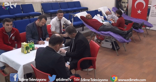 Türk Kızılayı Edirne Şubesi'nce kurulan sedyelerde çalışanlar kan verdi. Edirne Aile ve Sosyal Politikalar İl Müdürü Bilgin Özbaş, gazetecilere yaptığı açıklamada, kanın tek tedarik kaynağının insan olduğunu söyledi