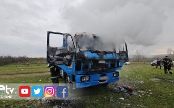 EDİRNE’DE PARK HALİNDEKİ KAMYON ALEVLERE TESLİM OLDU
