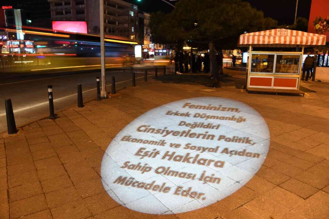 Kadıköy Belediyesi bu yıl 8 Mart Dünya Emekçi Kadınlar Günü mesajını farklı bir yöntemle verdi. Belediye çalışanlarının duygu ve düşüncelerinin yer aldığı 21 slogan, Kadıköy cadde ve sokaklarına yansıtıldı. Gecenin karanlığını aydınlatan sloganlar, kadınlar tarafından büyük beğeni topladı. Kimi bir daha baktı kimi de fotoğrafını çekti.