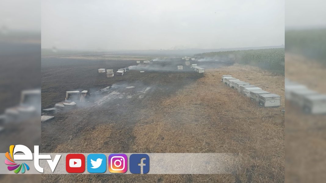 Kırklareli’nin Babaeski ilçesinde çıkan anız yangınında, çok sayıda arı telef oldu.