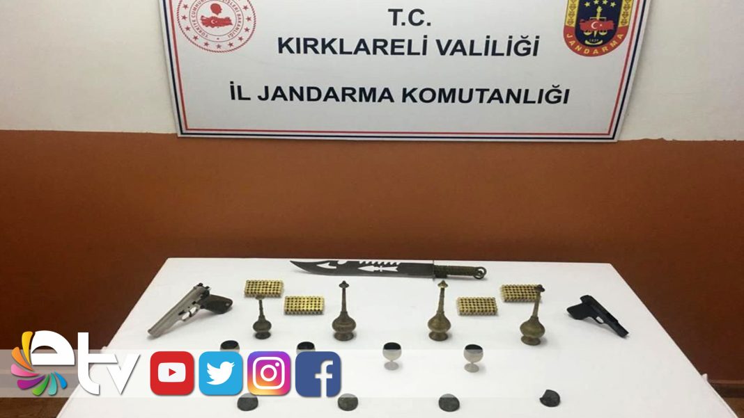 Kırklareli’de jandarma ekiplerince yapılan operasyonda Bizans dönemine ait parçalar ile ruhsatsız tabanca ve kenevir ele geçirildi.