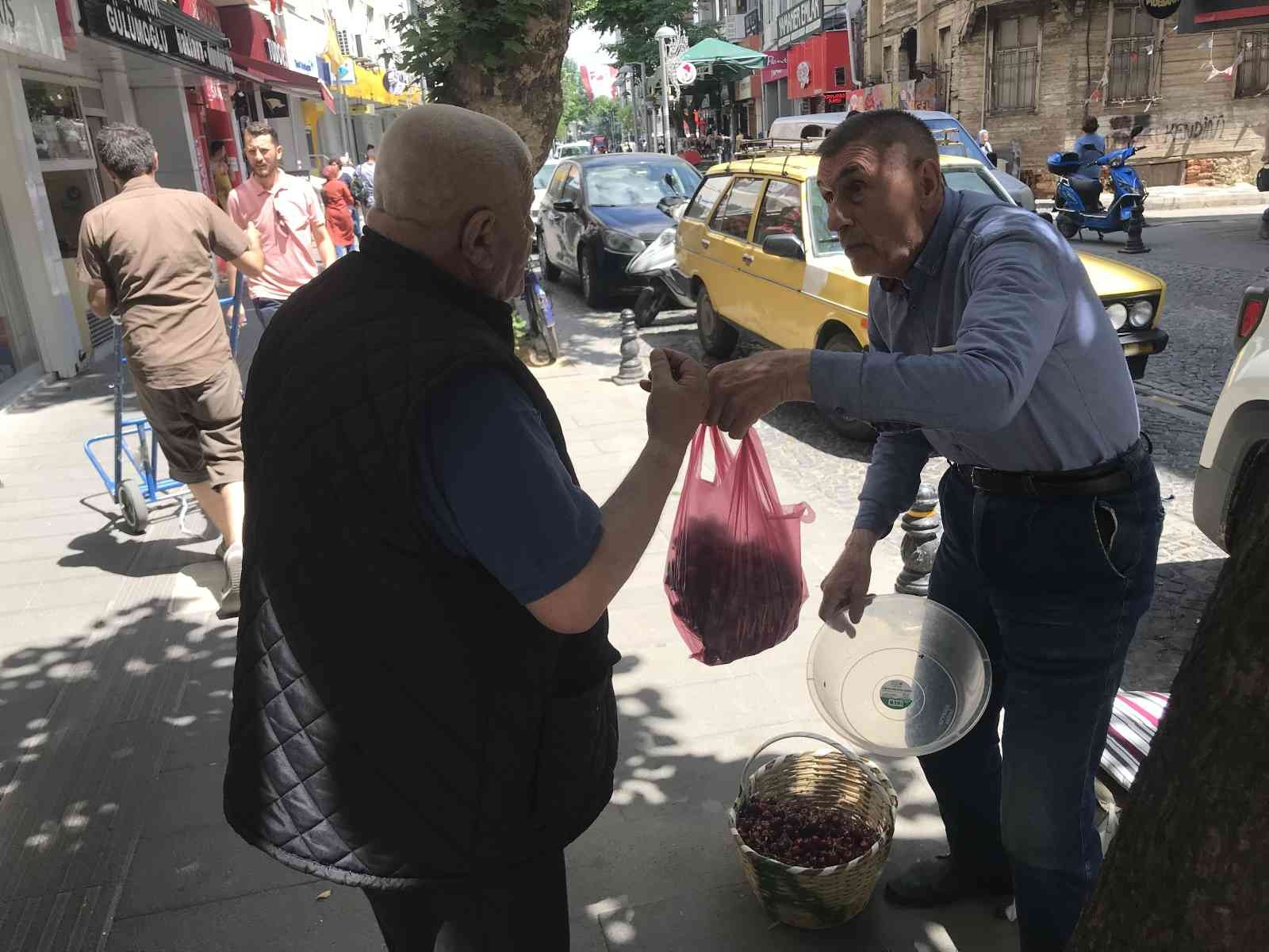 Yılın ilk kirazının tezgahlara çıktığını belirten çiftçi, “Kirazlarımız 20 liradan başlıyor 30, 35, 40 liraya kadar çıkıyor. Kırklareli’nin Karahıdır Mahallesi’nde yetiştirilen kirazlar bunlar.