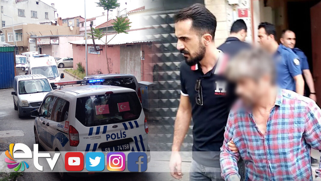 Tekirdağ’da eşini sopayla döven adam, kapıdan adım atar atmaz polise yakalandı.