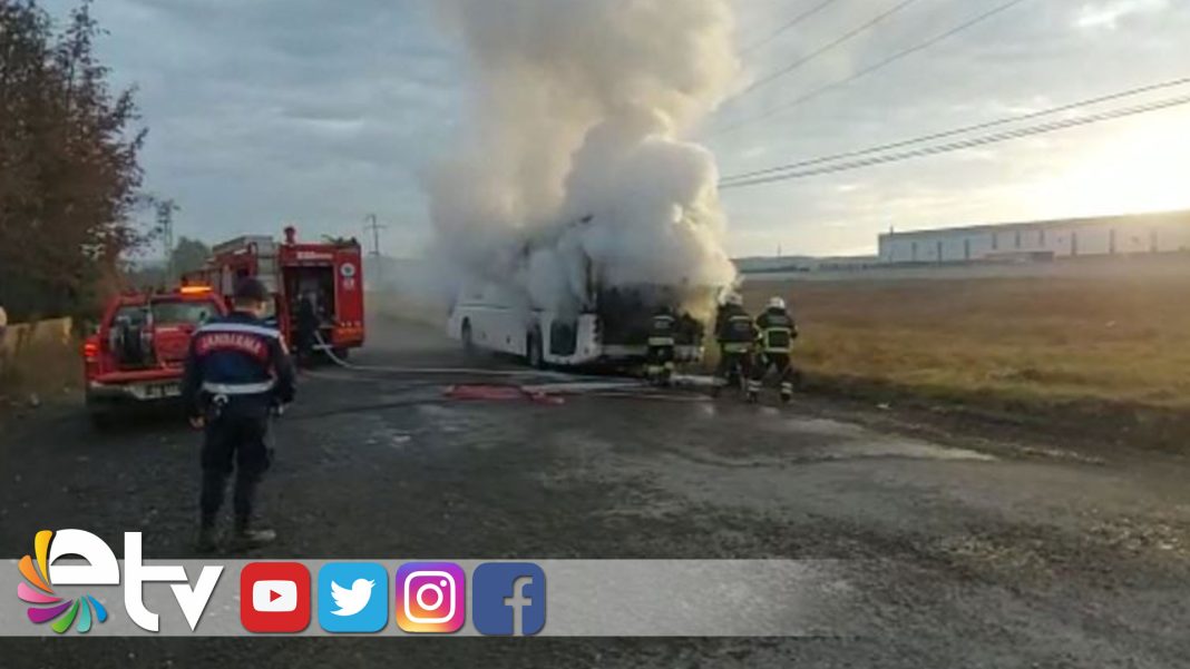 Tekirdağ’ın Ergene ilçesi Ulaş Mahallesi Motor Yerleri mevkiinde 45 işçiyi fabrikaya bırakan şoför Sebahattin Epgüler, otobüsü yol kenarına park edip ayrıldı. Birkaç dakika sonra motor kısmı tutuşan otobüste yangın çıktı. Yangını görüp ilk müdahaleyi yapan fabrika çalışanları itfaiyeyi arayıp yardım istedi.