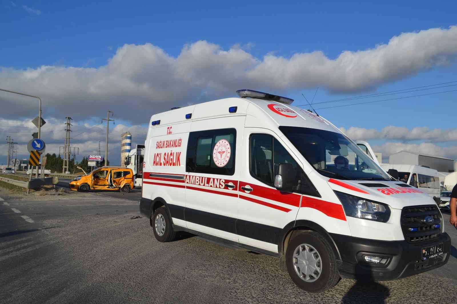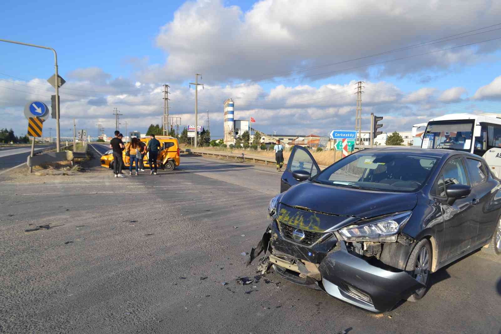 Tekirdağ Ergene’de kırmızı ışık ihlali yaptığı iddia edilen ticari taksi, yol ayrımında dönüş yapan otomobille çarpıştı. Kazada taksi şoförü yaralandı.