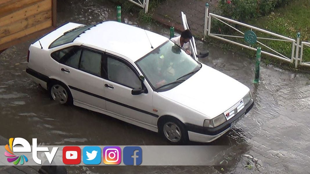 Tekirdağ’da şiddetli yağışın ardından adeta göle dönüşen sokakta bir araç mahsur kaldı. Araç sürücüsü, mahsur kalan otomobili kendi imkanlarıyla iterek kurtardı.