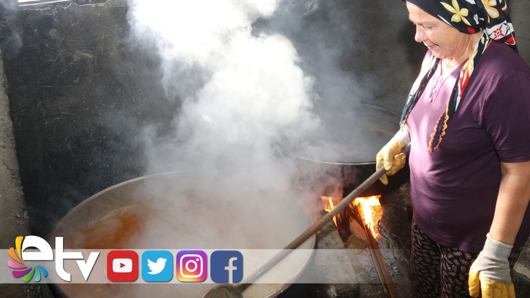 Harıl harıl yanan odun ateşinde pekmez kaynatan Nefise Çobanoğlu, pancarın tarladan sofraya uzanan sürecini anlattı.