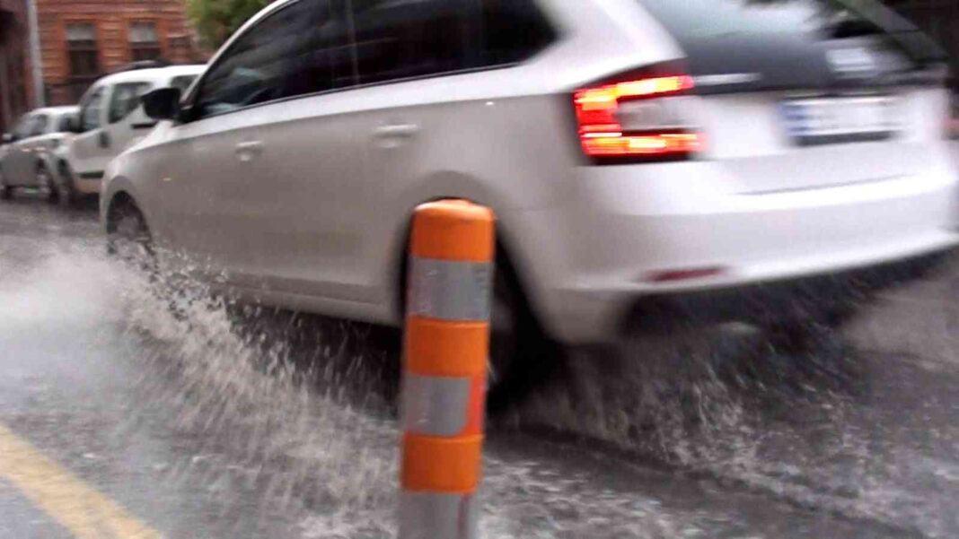 Yağmur suları sebebiyle yollar dereyi andırırken, yoldan geçen araçlardan sıçrayan sular vatandaşlara zor anlar yaşattı.