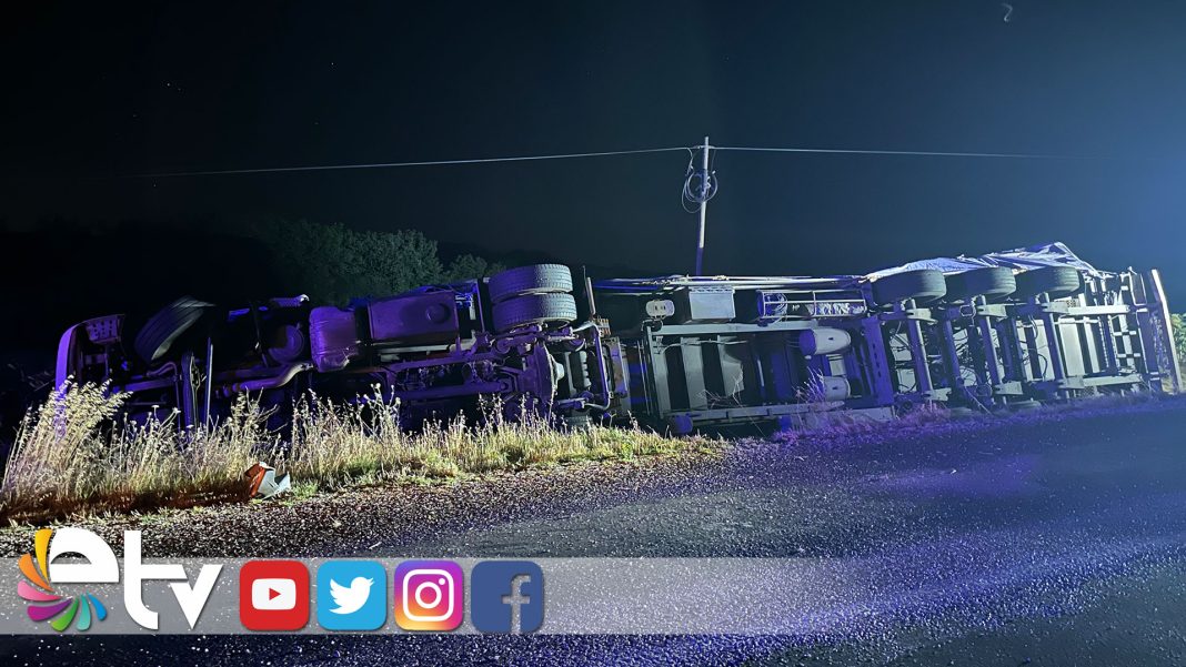 VİRAJI ALAMAYAN TIR DEVRİLDİ: 5 YARALI