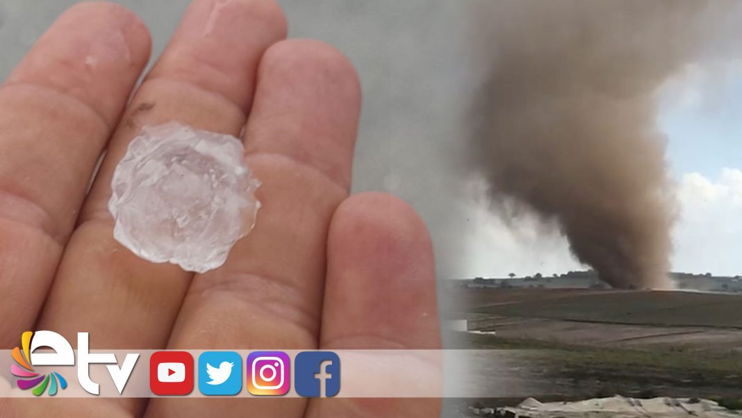 Meteoroloji Genel Müdürlüğü’nden yapılan uyarının ardından Tekirdağ’ın Çerkezköy ilçesinde öğle saatlerinde hortum etkili oldu. Hortumun yanı sıra misket büyüklüğünde yağan dolu nedeniyle vatandaşlar zor anlar yaşadı.
