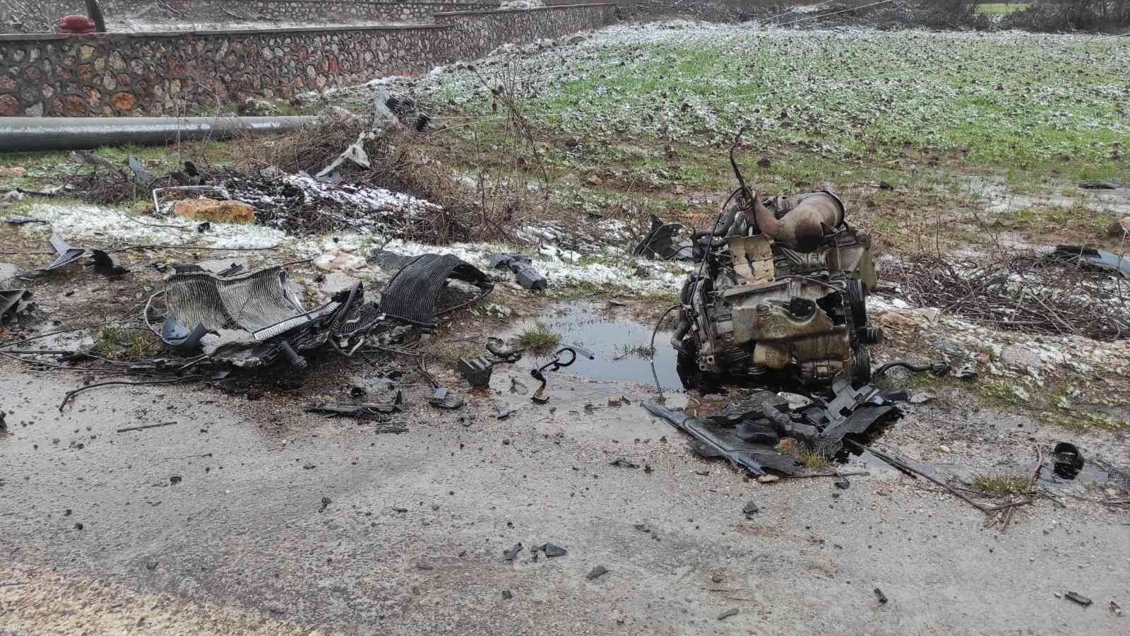 Öte yandan çarpmanın şiddetiyle otomobilin motoru yerinden çıktığı görüldü.