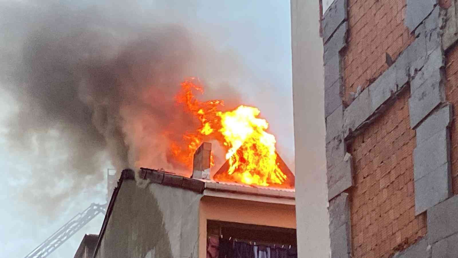 Polis ekipleri çevrede güvenlik önlemi alırken alev alev yanan çatıya ise itfaiye ekipleri müdahale etti.