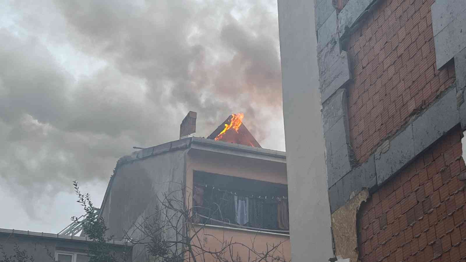 İtfaiye ekiplerinin çalışması sonrası kontrol altına alınan yangında çatı katında maddi hasar meydana geldi.