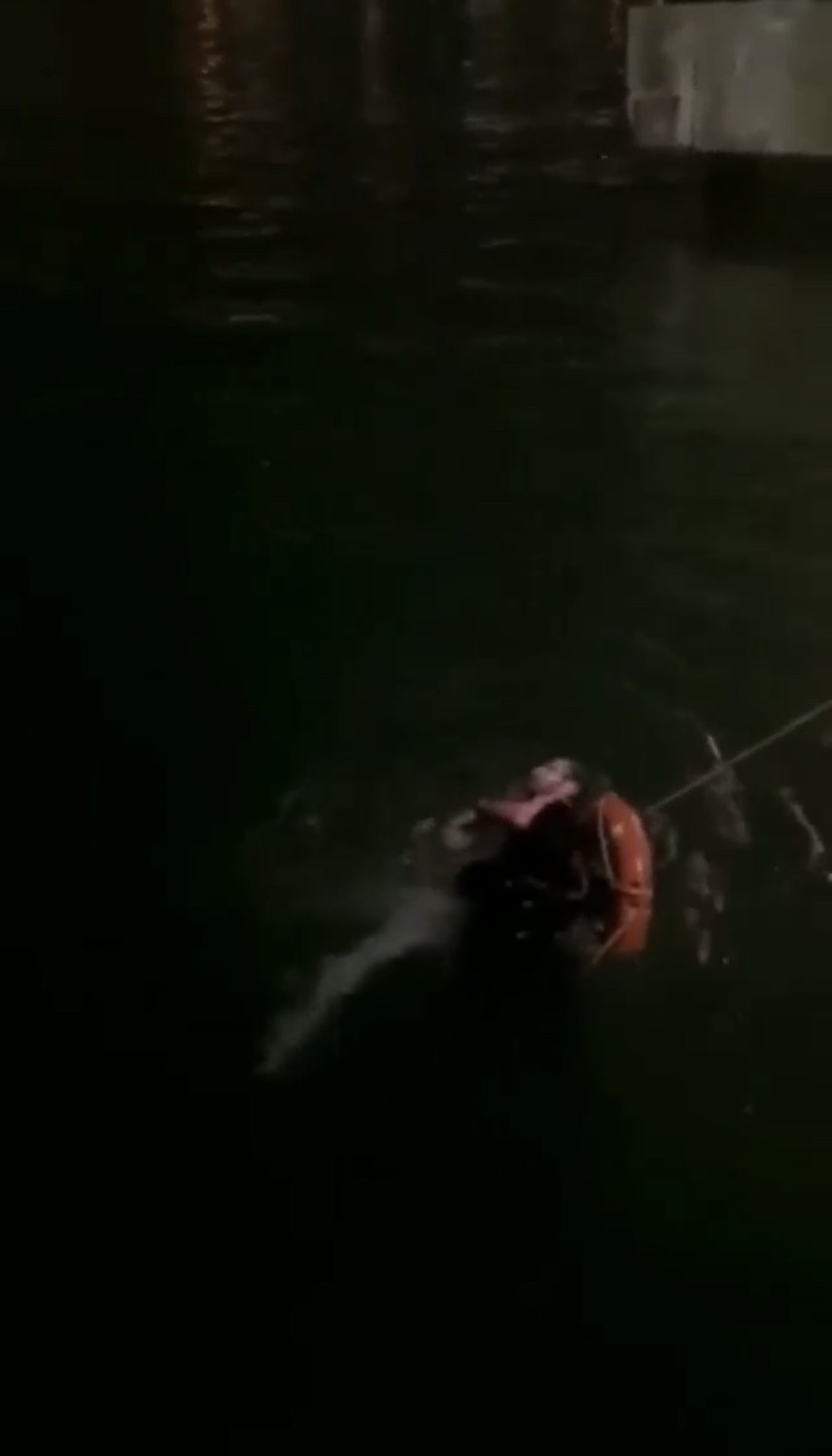 Sudan çıkarıldıktan sonra üzerine battaniye örtülen şahıs ambulans ile hastaneye kaldırıldı.